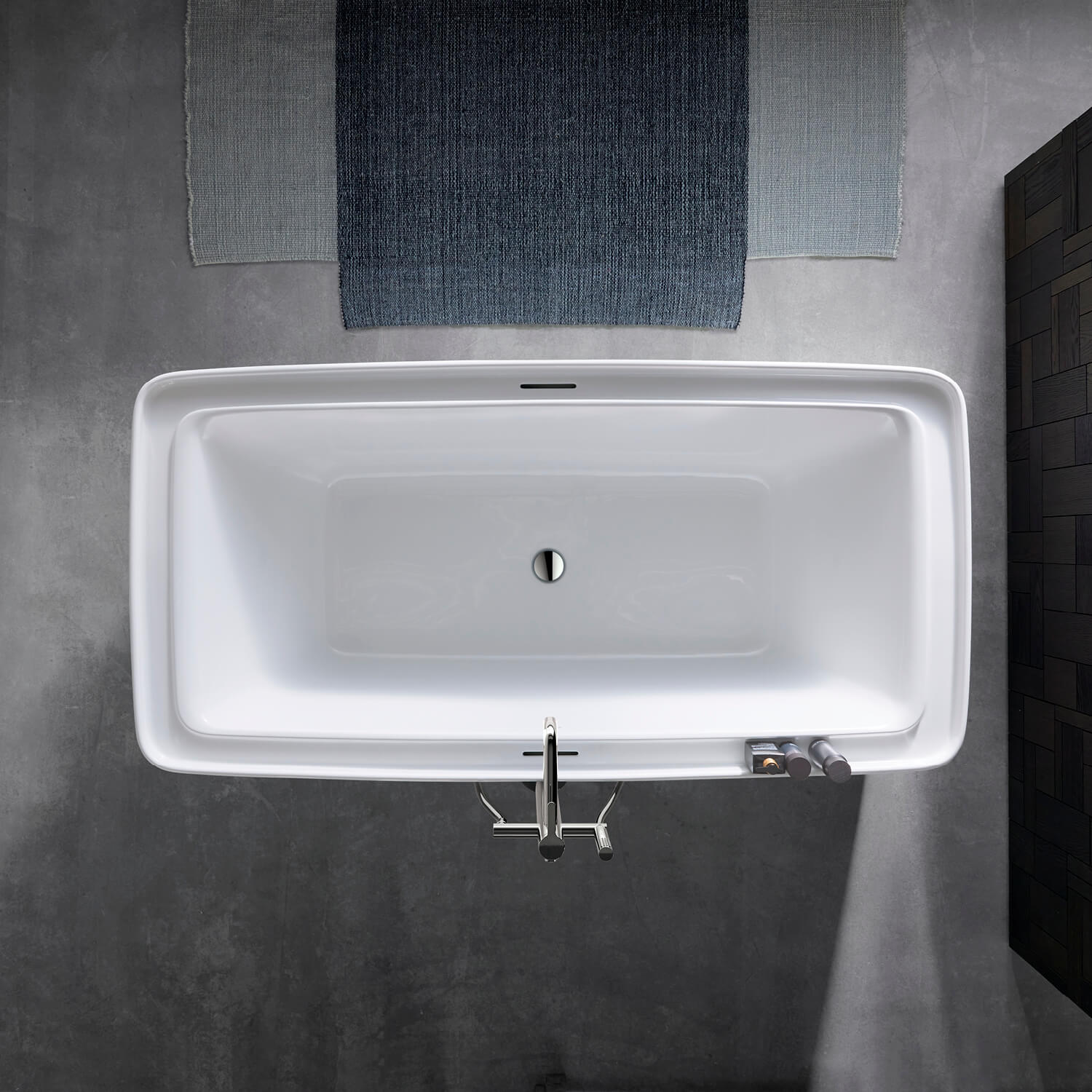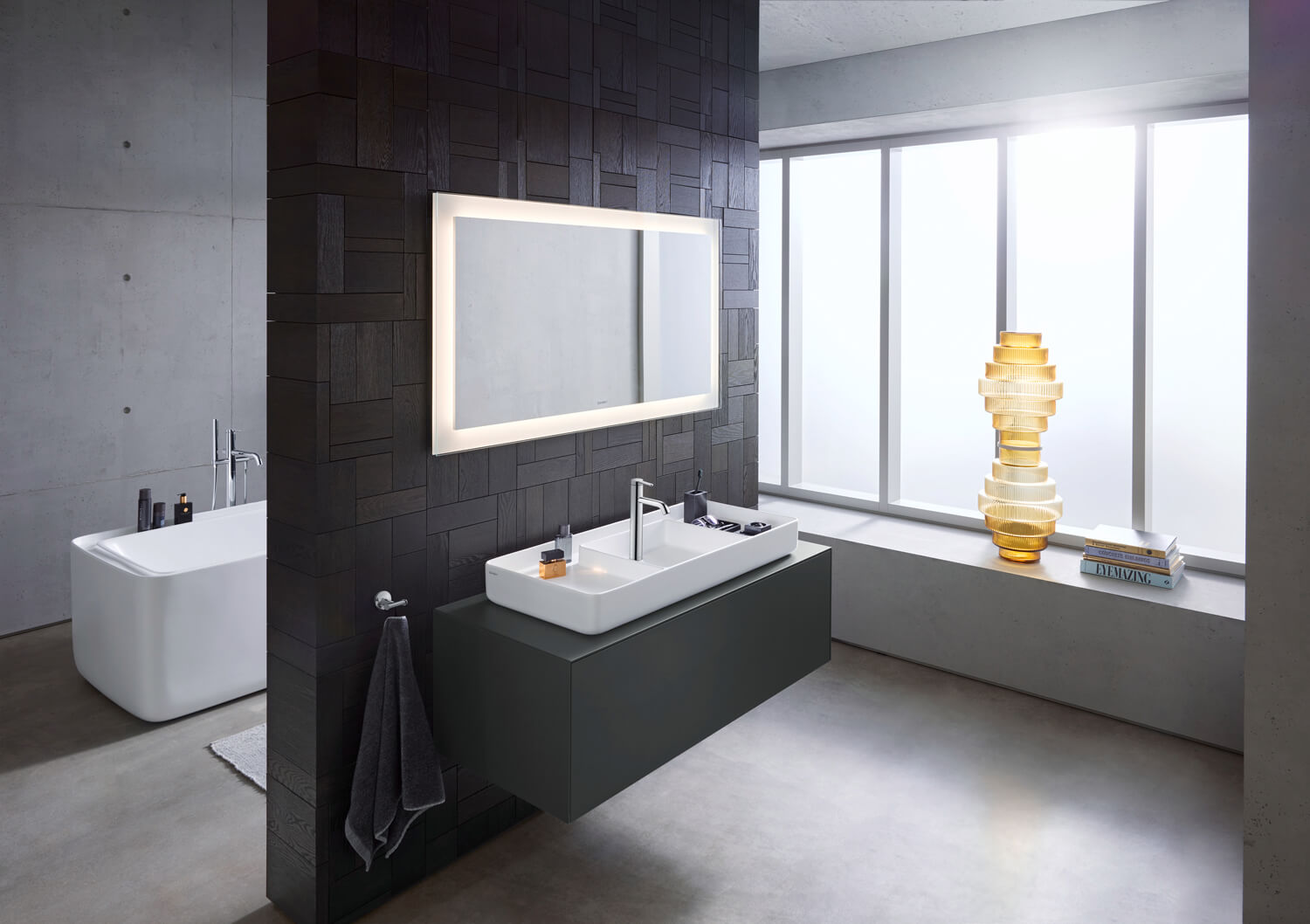 Источником вдохновения послужила традиционная японская коробка для бенто, в которой внутренние перегородки образуют несколько отделений, в которых можно хранить различные аксессуары. Четко структурированная ванна с разумным разделением влажной и сухой зон открывает бесконечное количество возможностей индивидуального дизайна.