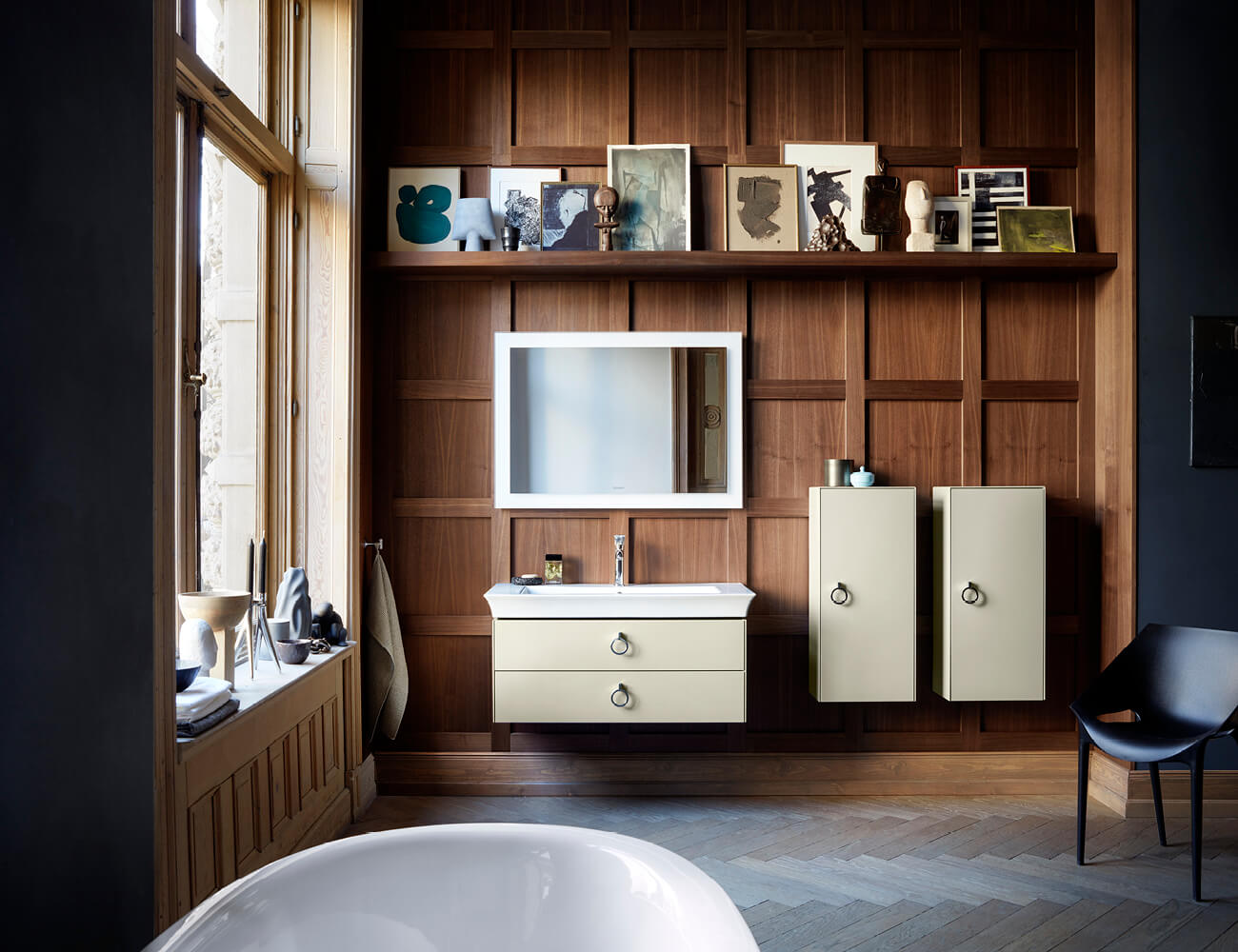 Мебель для ванной комнаты, зеркала и шкафы из серии White Tulip, дизайн которых также разработал Филипп Старк, прекрасно сочетаются с продукцией Bento Starck Box. Разнообразие различных дизайнов и размеров предлагает множество индивидуальных вариантов дизайна для идеального дизайна вашей ванной комнаты.